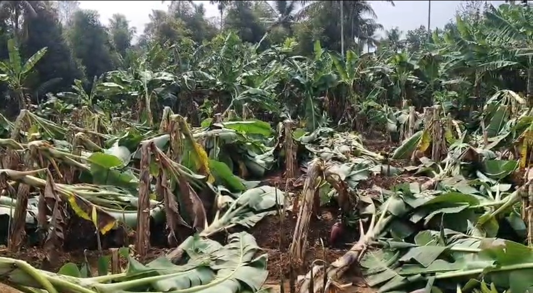 കരുമാലി പത്മനാഭന്റെ 250 ഓളം നേന്ത്രവാഴകളാണ് ഒടിഞ്ഞുവീണത്. ആറുമാസം പ്രായമായ കുലച്ച വാഴകളാണ് നശിച്ചത്. ഓണവിപണി ലക്ഷ്യമാക്കി കൃഷിചെയ്ത വാഴകൾ നശിച്ചതോടെ കനത്ത നഷ്ടമാണ് കർഷകന് നേരിട്ടത്. വരന്തരപ്പിള്ളി പഞ്ചായത്ത് വൈസ് പ്രസിഡൻ്റ് സാൻഡോ നന്തിപുലം, പഞ്ചായത്തംഗം മെൽബിൻ എന്നിവരുടെ നേതൃത്വത്തിൽ അധികൃതർ സ്ഥലം സന്ദർശിച്ചു.